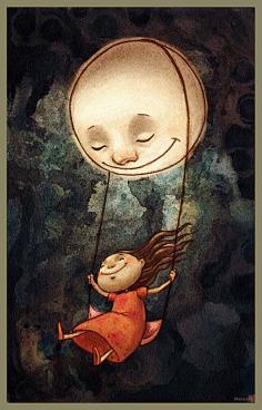 Illustration Museum Pinzellades al món: Gronxant-se amb la lluna / Columpiándose con la luna / Swinging with the moon #ilustracion #infantil #dibujo