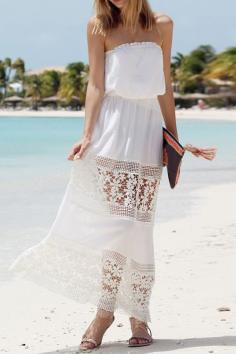 Strapless Floral Pattern Openwork Maxi Dress