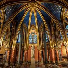 Sainte-Chapelle -->This Gothic masterpiece, built by Louis IX (1214-70) as a shrine for his holy relics of the passion and completed in 1248, is considered the most beautiful church in Paris, not least for its 15 stained-glass windows soaring 15 metres to a star-covered vaulted roof. The church was damaged during the Revolution but restored in the mid-19th century.