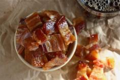 Pig Candy! This is a recipe for candied bacon. Brown sugar, cayenne pepper & maple syrup. Oh yumz.