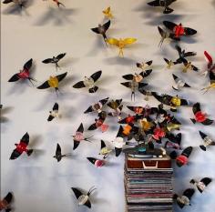 Vinyl transforms into art. Old albums take flight at the Alexander hotel – Indy’s hip art hotel curated by the Indianapolis Museum of Art.