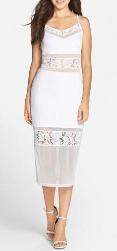 'Lucky Layer' Lace Inset Body-Con Midi Dress