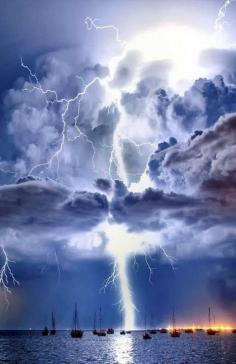 Lightning illuminates a cumulonimbus cloud over Corio Bay, Victoria, Australia