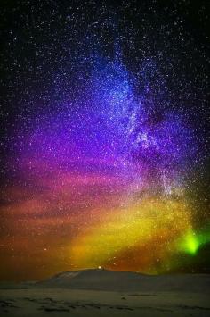 Incredible Photo of our Universe, Aurora Borealis, Milky Way, endless stars, Iceland
