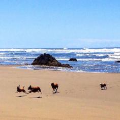 16 paws, and only two are touching the sand. Summer joys at Seal Rock Beach, Oregon. Coastalliving.com