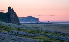 The coast of Southern Iceland as the sun rises over the lupines that cover the hills of V�k. (From: 12 GORGEOUS Images of the 'Golden Hour' Around the World)