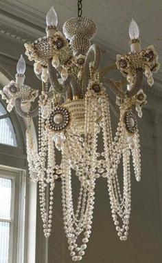pearl chandelier... Uhm, ok. I really need this. I'm sure it will fit in SOMEWHERE in my house!!