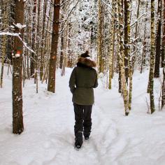Repovesi National Park, Kouvola, Finland - Hiking through the snowy...