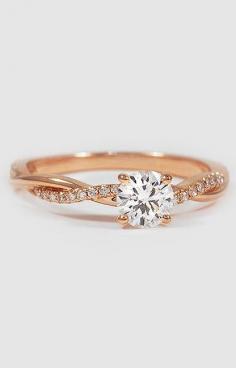 This beautiful ring features a strand of diamonds entwined with a high polished ribbon of rose gold.