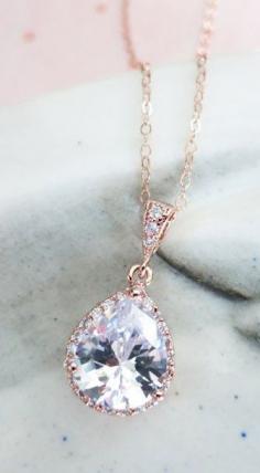 Rose Gold Luxe Cubic Zirconia Teardrop Necklace - Luxe