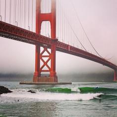 surfing under the Golden Gate at Fort Point