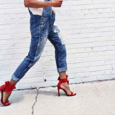 Sexin' up our Nasty Gal Over It Denim Overalls with red hot heels