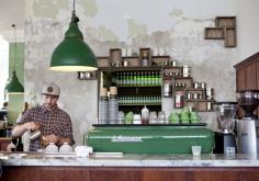 Little Henri | Melbourne I like the green espresso machine and that concrete wall