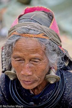 Western China | Wa woman wearing traditional earrings. Yunnan | ©Nick Mayo