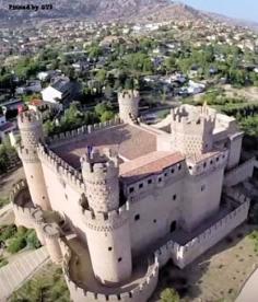 Aerial view of the Mendozas' Castle. Manzanares el Real, Madrid, Spain