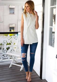 White Double-Breasted Sleeveless Blazer