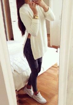 Beige Side Slit Tunic Sweater