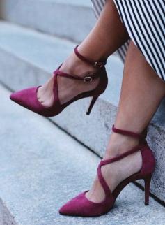 Sexy, strappy suede pumps in burgundy