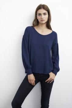 Pleated Sleeve Blouse :: Fall Street Style :: Soft Crepe Top :: Key Hole Back Detail :: Velvet by Graham & Spencer