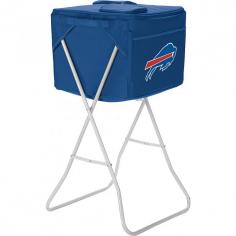 Buffalo Bills party cooler with stand. This Bills cooler is the lightweight, soft-sided portable party cooler that comes with a removable, collapsible stand so your drinks and/or snacks are accessible at a comfortable height. It comes with a removable, water-resistant interior divider that allows you to divide the cooler into two sections, each with its own access. Separate food from drinks or beverages by type. In the event there's no shade, you can insert a standard sized umbrella (not included) into the integrated slot to keep the cooler out of the sun. This cooler and stand can be used for backyard parties or as a refreshment stand at your child's soccer games. All licensed products have been approved by the team; however, Picnic Time is considered a designer line. The product color may not be an exact match to the team color.