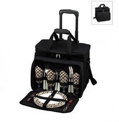 Long-lasting 600 denier poly-canvas material in black. Includes adjustable shoulder strap and hand grip. Features detachable wheel cart with retractable handle. Zippered closure to secure your things. Dimensions: 17.25L x 14.5W x 13.5H in. Spend time with a loved one or pack a meal for your family with the Picnic at Ascot London Picnic Wheeled Cooler for Four. This cooler features a unique, divided cooler compartment with separate compartments for wine and food, and an easy-access drink panel in the lid. This leak-proof cooler allows you to use ice to keep your food and drinks cooler longer. Hand grips and an adjustable shoulder strap make this bag easy to carry, while the wheeled cart with retractable handle allows you to pull this picnic cooler along with you, or you can take off the wheeled cart depending on where you're headed. This beautiful cooler is available in classic black and comes complete with a combination corkscrew, cheese knife, acrylic wine glasses, coordinating melamine plates and napkins, stainless steel flatware, and a front pocket for personal items or anything extra you may need. About Picnic at AscotDay or evening, beachside or backyard, picnics are a favorite event. By introducing Americans to the British tradition of upmarket picnics over a decade ago, Picnic at Ascot created a niche for picnic products combining British sophistication with an American fervor for excitement and exploration. Known as an industry leader in the outdoor gift market, Picnic at Ascot houses a design staff dedicated to preserving the prized designs and premium craftsmanship signature to the company. Their exclusive products are carried only by selective merchants. Picnic at Ascot provides quality products that meet the demands of today, yet reflect classic picnic style.
