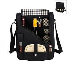 Made of durable poly-canvas Thermal shield insulation and 3 padded bottle dividers Adjustable shoulder strap for easy carry Stylish wine and cheese cooler in black Dimensions: 10.5W x 4D x 13.75H in. Head to your favorite picnic spot with the Picnic At Ascot London Pinot Wine and Cheese Picnic Cooler for 2. You can use it as a two-bottle carrier or remove the glasses to make it a three-bottle carrier. This quintessential cooler comes with necessary items like glasses corkscrew cutting board and cheese knife. Inside there's Thermal Shield insulation that keeps your drink and food at a desired temperature. An adjustable shoulder strap makes carrying it around easier. Designed in the U.S. and made of 600D polycanvas this carrier is durable. About Picnic at AscotDay or evening beachside or backyard picnics are a favorite event. By introducing Americans to the British tradition of upmarket picnics over a decade ago Picnic at Ascot created a niche for picnic products combining British sophistication with an American fervor for excitement and exploration. Known as an industry leader in the outdoor gift market Picnic at Ascot houses a design staff dedicated to preserving the prized designs and premium craftsmanship signature to the company. Their exclusive products are carried only by selective merchants. Picnic at Ascot provides quality products that meet the demands of today yet reflect classic picnic style.