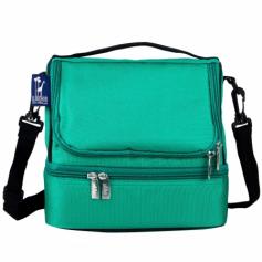 Sturdy, durable, fabric construction. Food safe. PVC, BPA & Phthalate-free. Insulated and easy-to-clean. Two compartments: Lower compartment includes microwave and dishwasher-safe container. Upper compartment easy to access through front opening. Easy to carry with shoulder strap and hand strap. Ages 3+. Spot clean with mild soap and water. One-year manufacturer's warranty against defects (Normal wear-and-tear, and misuse excluded). 9 in. L x 8 in. W x 7 in. H (1 lbs) Part of our Solids Collection, Emerald is a rich, verdant hue. This jewel tone green is vivid and energizing with blue undertones. A real gem! Double the deliciousness of lunchtime with the Wildkin Double Decker Lunch Box. Insulated and non-toxic, this two-tiered lunch box keeps meals fresh. On top, a roomy pouch is great for chips, fruit and drinks. The lower level includes a dishwasher- and microwave-safe container, and is great to store the main event. Includes handy shoulder strap for easy carrying. The Double Decker lunch box is expertly designed for any lunchtime adventure.