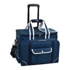 Made of long-lasting 600 denier poly-canvas in blue. Thermal shield insulated and waterproof cooler compartment. Adjustable shoulder strap for easy carrying. Zippered closure to secure your things. Dimensions: 17.5L x 16W x 17.5H in. Enjoy the warm months of the year outdoors with friends, family, and good food with the Picnic at Ascot Bold Picnic Wheeled Cooler for Four. Made of 600 denier poly-canvas material with a thermal shield insulated interior, the unique, waterproof divided cooler compartment allows you to keep your drinks on ice while your food stays cool and dry. A zippered opening makes it easy to get your items while the adjustable shoulder strap allows you to carry this picnic cooler comfortably. With a combination corkscrew, hardwood cutting board with juice groove, cheese knife, wooden salt and pepper shakers with non-spill stops, acrylic wine glasses, coordinating melamine plates, stainless steel flatware, and cotton napkins, you'll have everything you need to thoroughly enjoy your food and drink in any setting. Its wheeled design makes bringing this picnic cooler with you easy, and the wheel cart is removable for your convenience. About Picnic at AscotDay or evening, beachside or backyard, picnics are a favorite event. By introducing Americans to the British tradition of upmarket picnics over a decade ago, Picnic at Ascot created a niche for picnic products combining British sophistication with an American fervor for excitement and exploration. Known as an industry leader in the outdoor gift market, Picnic at Ascot houses a design staff dedicated to preserving the prized designs and premium craftsmanship signature to the company. Their exclusive products are carried only by selective merchants. Picnic at Ascot provides quality products that meet the demands of today, yet reflect classic picnic style.