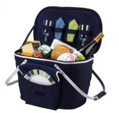 Made of 600D poly-canvas material. Lightweight and durable aluminum frame. Zippered lid, front patch pocket, and swivel handles. Available in a variety of colors. Dimensions: 11W x 6D x 19H in. Enhance the experience of a romantic outing for two with the Collapsible Insulated Picnic Basket Set for 2. Your food or drinks remain at a desired temperature inside the Thermal Shield insulated basket. It's packed with essential items, like plates, glasses, and napkins. Designed in the U.S, this durable basket is made of 600D polycanvas with a food-safe, leak-proof PEVA lining. A built-in, lightweight aluminum frame and handles with padded grips make it easy to carry around. Because it's collapsible, it's easy to store too. About Picnic at AscotDay or evening, beachside or backyard, picnics are a favorite event. By introducing Americans to the British tradition of upmarket picnics over a decade ago, Picnic at Ascot created a niche for picnic products combining British sophistication with an American fervor for excitement and exploration. Known as an industry leader in the outdoor gift market, Picnic at Ascot houses a design staff dedicated to preserving the prized designs and premium craftsmanship signature to the company. Their exclusive products are carried only by selective merchants. Picnic at Ascot provides quality products that meet the demands of today, yet reflect classic picnic style. Color: Navy.