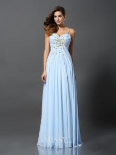 A-Line/Princess Sleeveless Spaghetti Straps Chiffon Sweep/Brush Train Prom Dresses with Beading