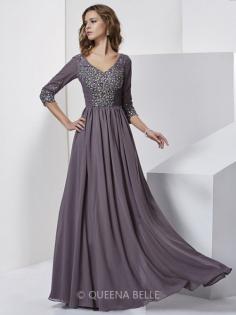 Sheath/Column V-neck Floor-Length 3/4 Sleeves Chiffon Beading Dresses