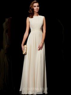 A-Line/Princess Jewel Chiffon Sleeveless Beading Floor-Length Dresses
