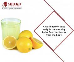 A warm #lemon juice early in the morning helps flush out #toxins from the body.