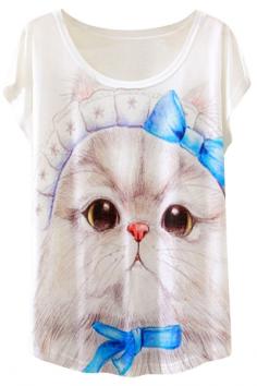 Cute Cat Pattern Cap Sleeve Loose Fit Tee OASAP.com