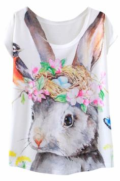 Eared Rabbit Print Loose Tee OASAP.com