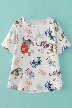 Vintage Elepant Print Short Sleeve Knit Tee OASAP.com