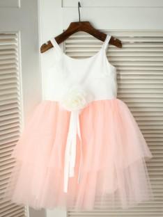 A-line/Princess Spaghetti Straps Floor-length Tulle Flower Girl Dresses with Hand-made Flower