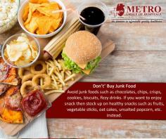Avoid junk foods such as chocolates, chips, crisps, cookies, biscuits, fizzy drinks. If you want to enjoy snack then stock up on #healthy snacks such as fruits, #vegetable sticks, oat cakes, unsalted popcorn, etc. instead.