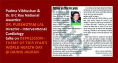 Padma Vibhushan & Dr. B C Roy National Awardee Dr. #Purshotam Lal, Director - Interventional #Cardiology talks on Depression - Theme of this Year’s World Health Day @ Dainik Jagran
