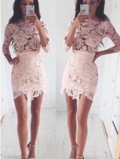 A-Line 1/2 Sleeves Scoop Lace Short/Mini Cocktail Dresses