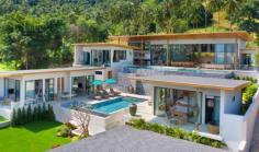6 Bedroom Hillside Villa with Infinity Pool in Koh Samui, Comfortably sleeps up to 15 guests with 2 swimming pools, spacious grounds, designer interiors and panoramic ocean views.