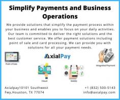 AxialPay is one of the leading payment solution providers in USA. Our services include credit card processing, point of sale, online payments, mobile payments, etc. to businesses which are small, medium and nationwide across United States. Our skill set and years of experience in the payment technologies will help grow your business.