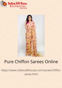 The mesh-like weave of a chiffon saree gives it a translucent look. The word Chiffon comes from the French word chiffon, which means "cloth." Silk or synthetic fibres such as nylon, rayon, and polyester are used to make Chiffon. Check out the collection of pure chiffon sarees online of Indian Silk House Exclusives.