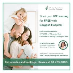 Start your IVF Journey for FREE with Gargash Hospital. Free initial consultation, 50% OFF on Ultrasound Scan, 50% OFF on Fertility Check-up for men. Avail your IVF Package now to include FREE 3 months follow-up with the dietician. For inquiries and bookings, please call 047030000.
