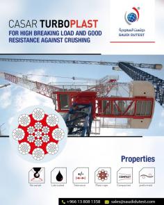 Saudi Dutest supplies exclusive CASAR Turboplast Wire Ropes with new improved design, suitable for smaller and greater lifting heights operations. Contact us to get more details on the product:
