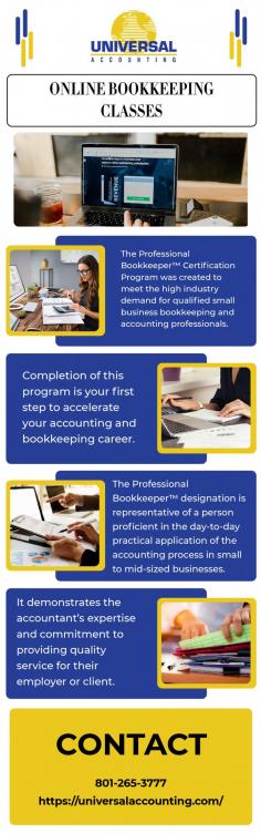 This program of online Bookkeeping classes is delivered through easy-to-follow instructional videos and workbooks (over 600 pages of instruction and reference materials). You'll be able to finish the courses on your own time and in a way that suits you. You're not alone, even if you're training from the comfort of your own home. You'll have access to qualified accounting coaches and mentors who own their own successful accounting firms, as well as skilled accounting experts. For more info visit here: https://universalaccounting.com/professional-bookkeeper/