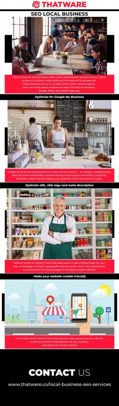 The objective of Google local SEO is to increase your brand's visibility outside your storefront and make your business more accessible to local online community prospects. ThatWare provides conversion-driven SEO local business services to help your company rank high in local SEO searches and increase income. Increase your local SEO efforts and link your business with high-intent clients in your locality.