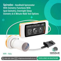 It is designed to be used as a standalone unit or connected to a PC, the Spirodoc fulfils all occupational health screening requirements for respiratory care within the workplace. It also provides the essential VC and FVC tests together with all associated spirometry parameters. It also gives Oxymetry functions like Sport Oxymetry, Overnight Sleep Oxymetry and 6 Min Walk Test.