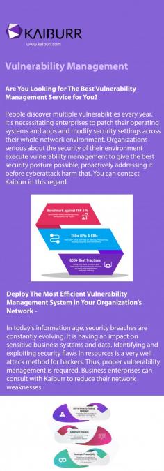 People discover multiple vulnerabilities every year. It's necessitating enterprises to patch their operating systems and apps and modify security settings across their whole network environment. Organizations serious about the security of their environment execute vulnerability management to give the best security posture possible, proactively addressing it before cyberattack harm that. You can contact Kaiburr in this regard. For more info visit here: https://www.kaiburr.com/