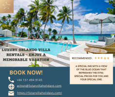 Get ready to experience luxury and relaxation like never before! 5 Star Villa Holidays offers Orlando Villa Rentals' most exquisite villas, each with its own private pool, spa, and stunning views. From traditional cabana-style villas to modern beachfront retreats, escape the everyday with us for an unforgettable getaway. Enjoy the convenience of having your own private space and all the amenities of a first-class resort—no need to worry about crowds or long lines. Whether you're looking for a romantic escape or the perfect family vacation, 5 Star Villa Holidays has you covered!